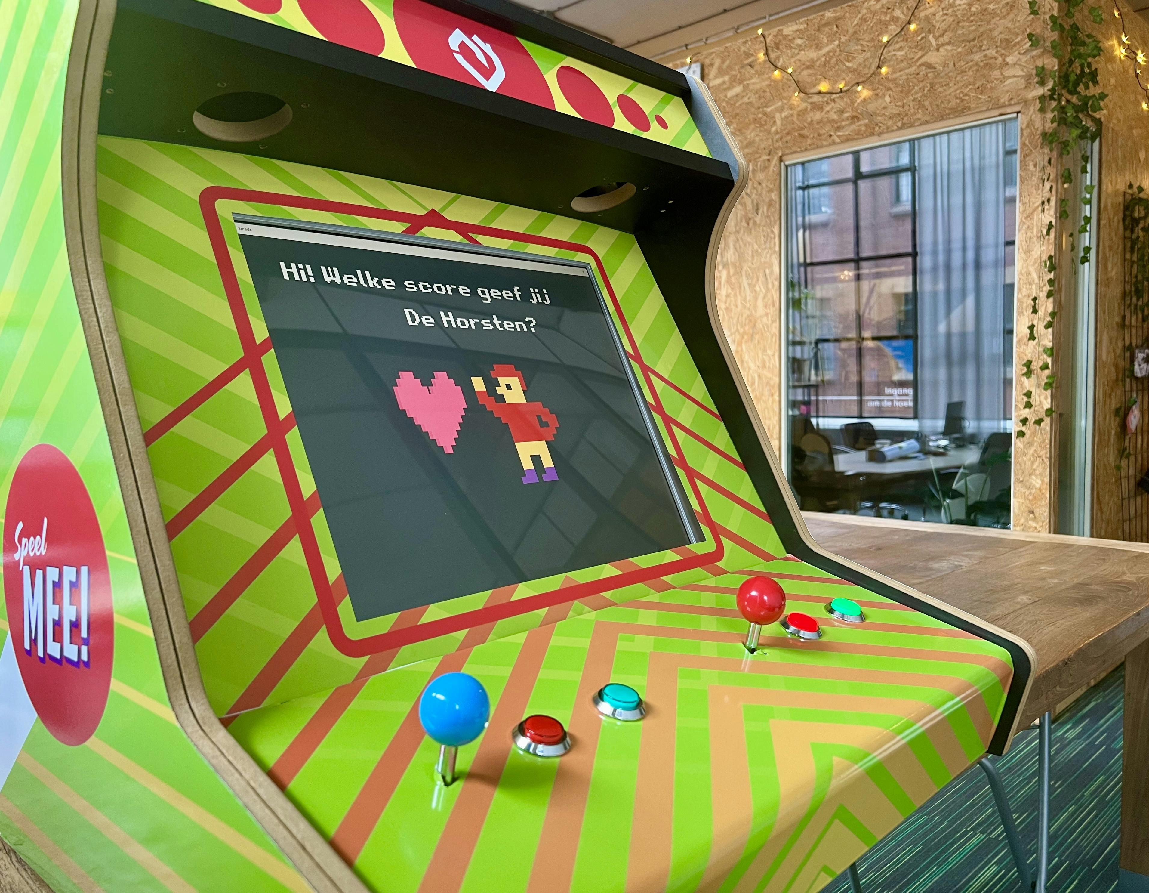 Deze vrolijke arcadekast kom je de komende weken (tot half juli) tegen op verschillende plekken in De Horsten.
