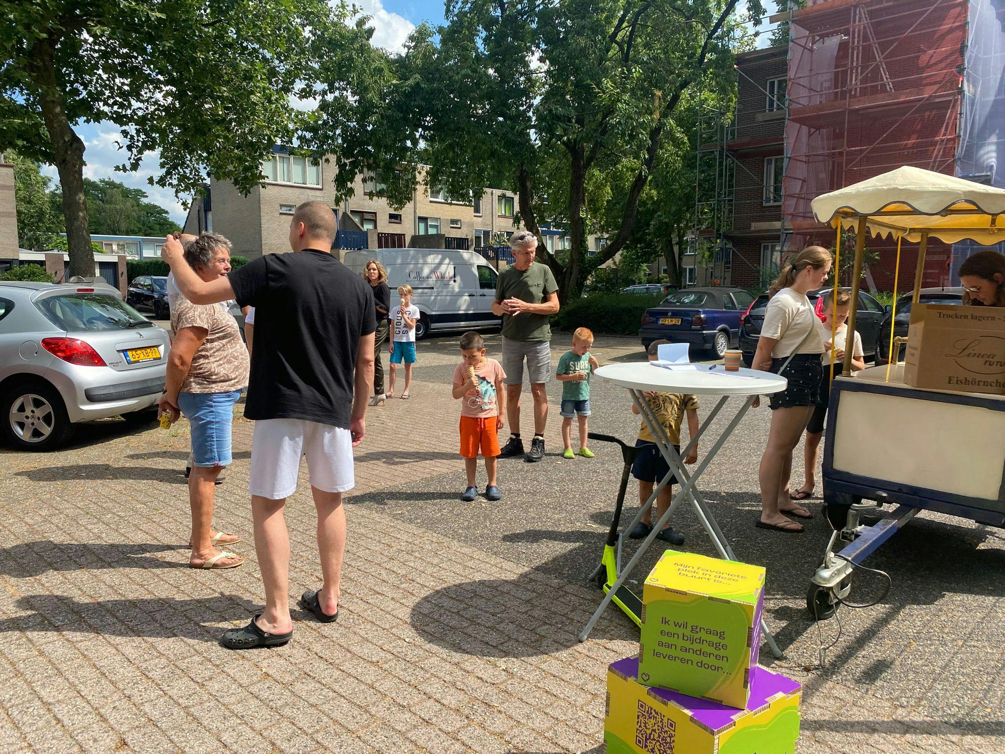 Woensdag 7 augustus werd door het team Buurt aan Zet een POP UP terras met ijscokar georganiseerd.